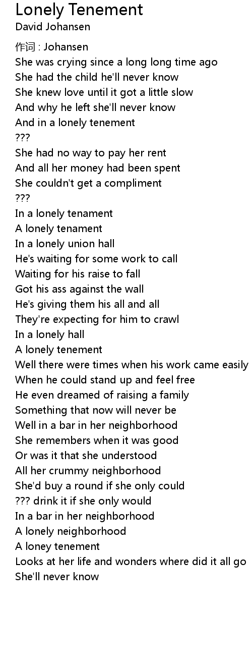 | 歌曲 | Lonely Tenement |