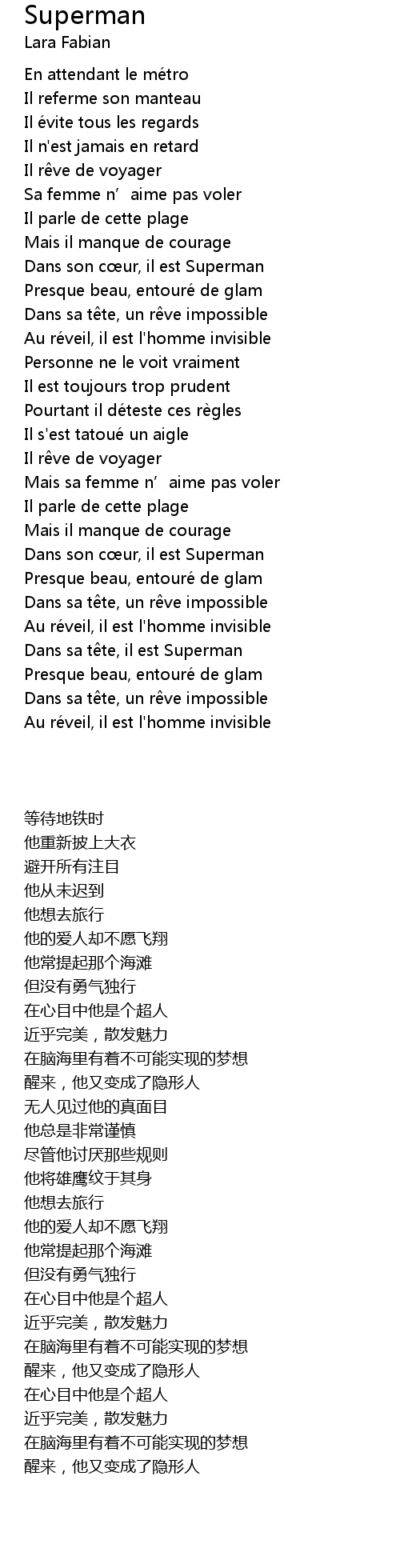 | [02:01.03] | Dans son c ur, il est Superman |
