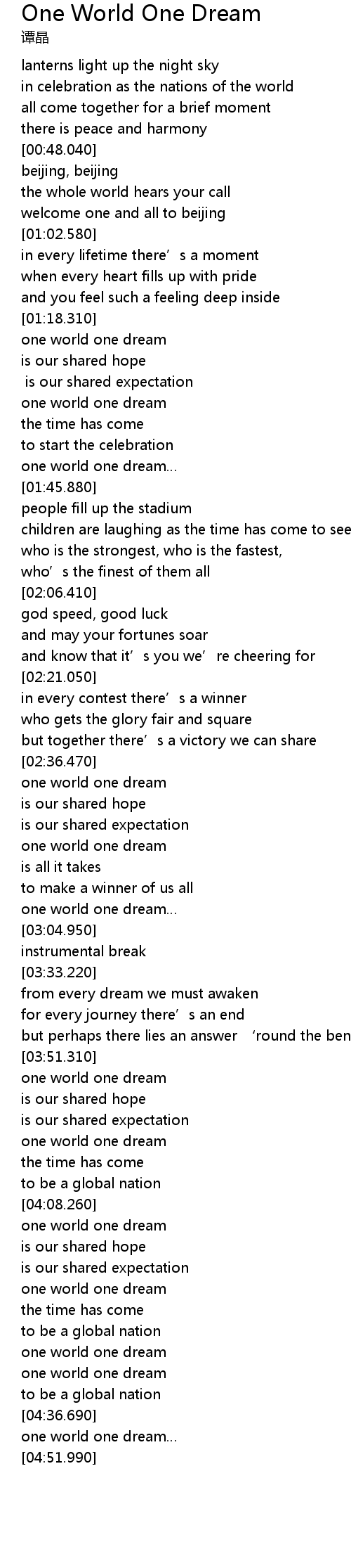 | [04:37.360] | one world one dream |