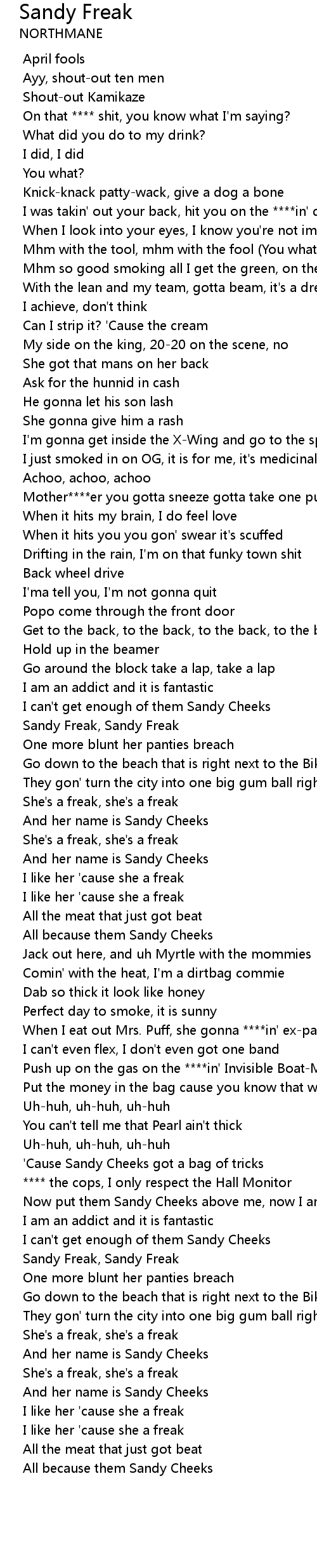 | [01:58.152] | Sandy Freak, Sandy Freak |