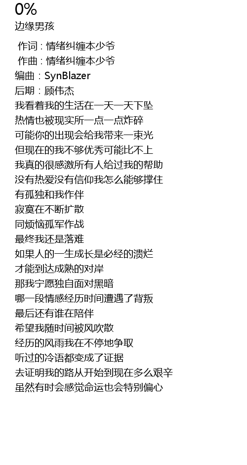 | [00:01.000] | 作曲 : 情绪纠缠本少爷 |