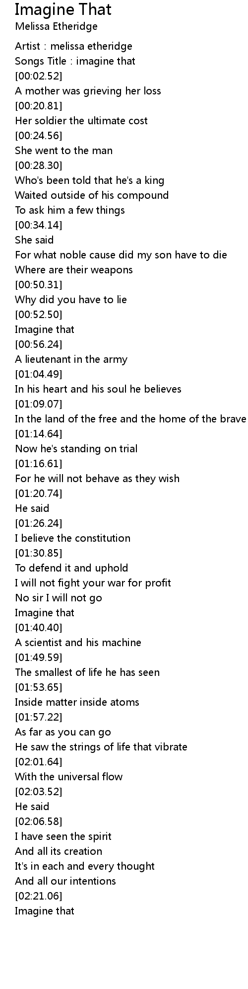 | [00:00.52] | Artist: melissa etheridge |