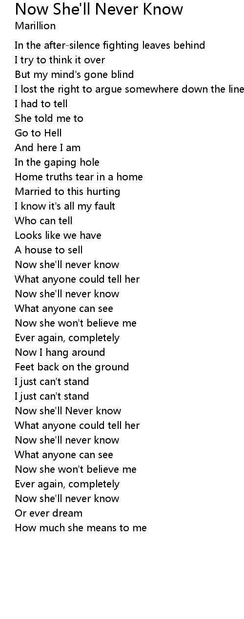 | Now she'll Never know | |