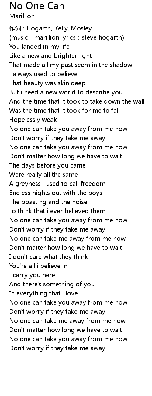 | 作词 : Hogarth, Kelly, Mosley ... | |