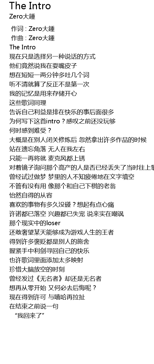 | [00:00.000] | 作词 : Zero大鍾 |
