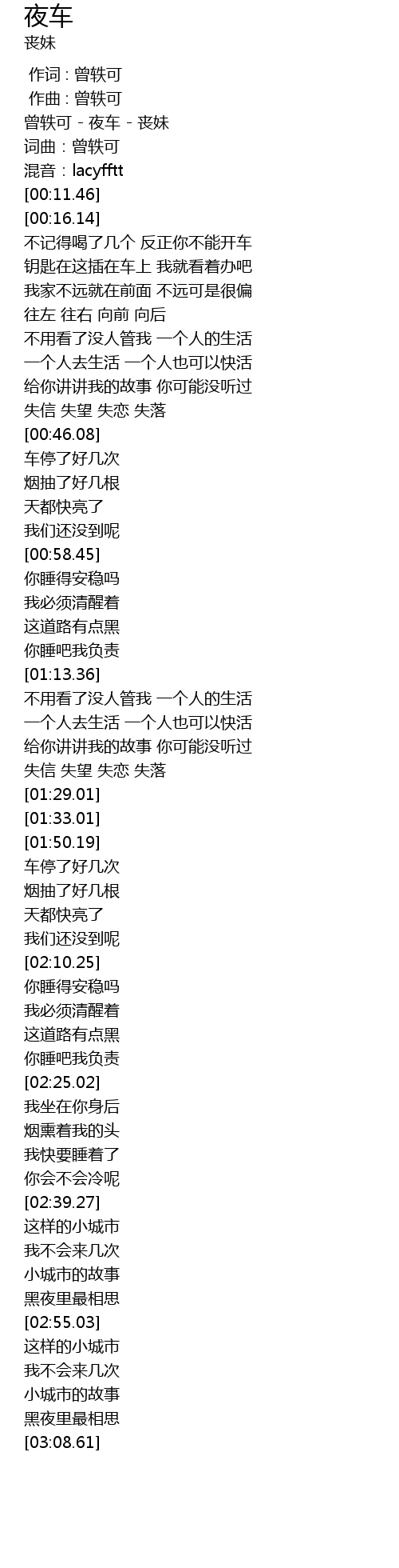 | [00:00.00] | 曾轶可 - 夜车 - 丧妹 |