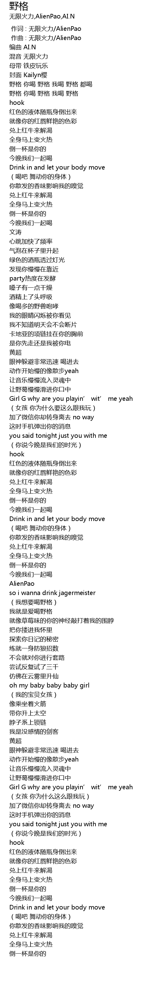 | [00:21.456] | 野格 你喝 野格 我喝 野格 都喝 |