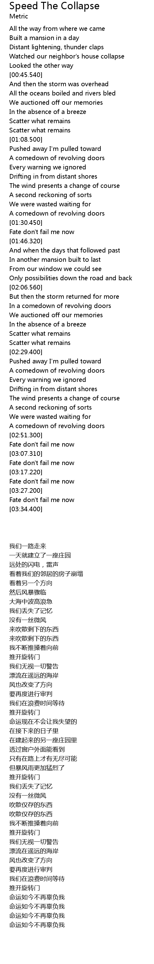 | [00:41.240] | Watched our neighbor' s house collapse |