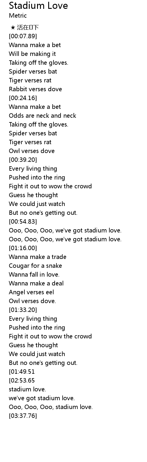 | [01:03.53] | Ooo, Ooo, Ooo, we' ve got stadium love. |