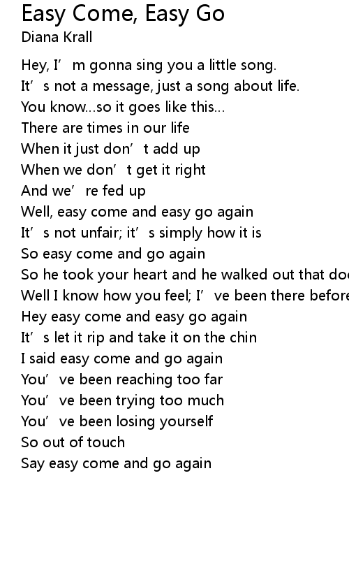 | Hey easy come and easy go again | |