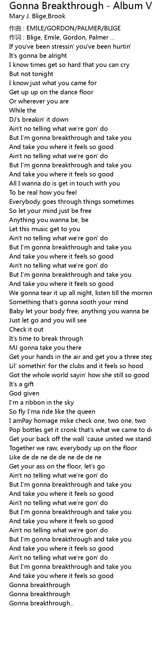 | 歌曲 | Gonna Breakthrough - Album Version |