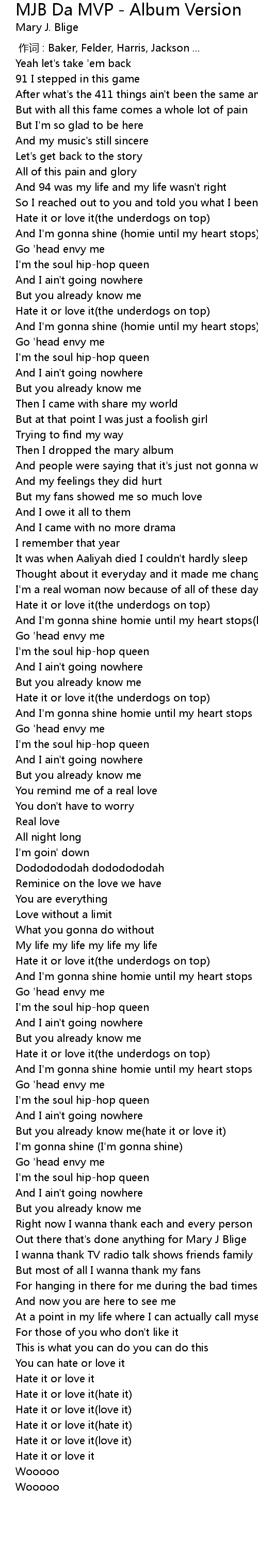 | [02:56.91] | Out there that' s done anything for Mary J Blige |