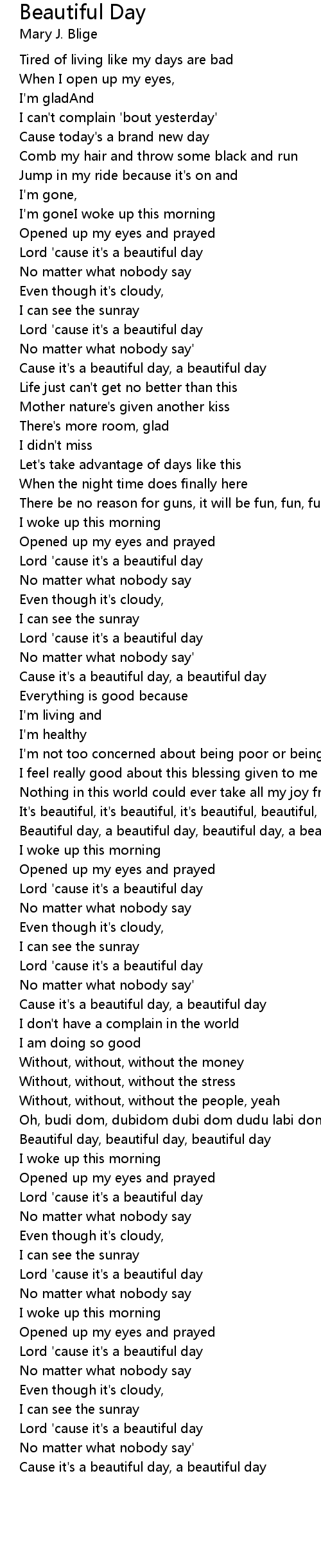 Beautiful day, a beautiful day, beautiful day, a beautiful day |
