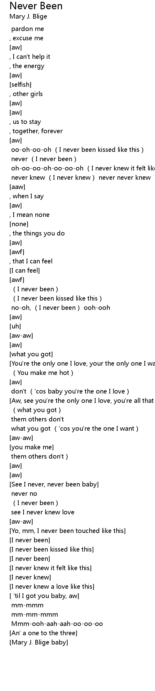 | [aw] no-oh, (I never been) ooh-ooh | |