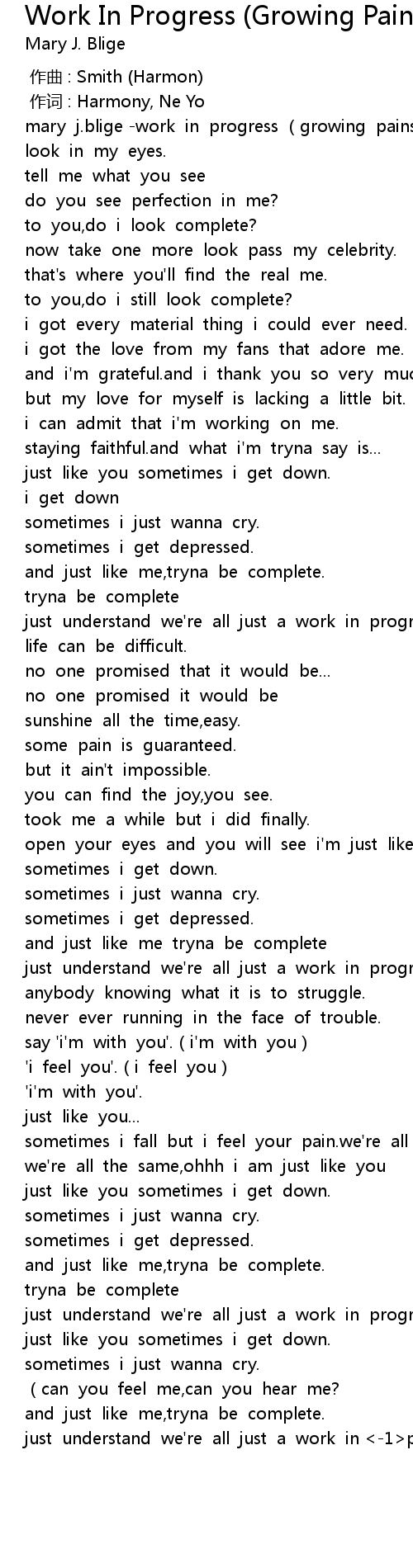 | [00:01.13] | mary j. blige work in progress growing pains |