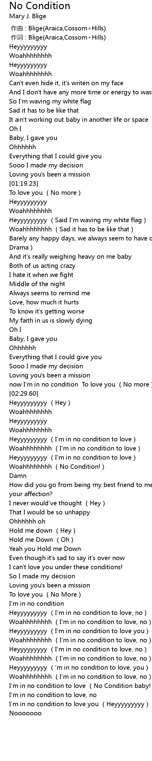 | [04:11.50] | I'm in no condition to love (No Condition baby!) |