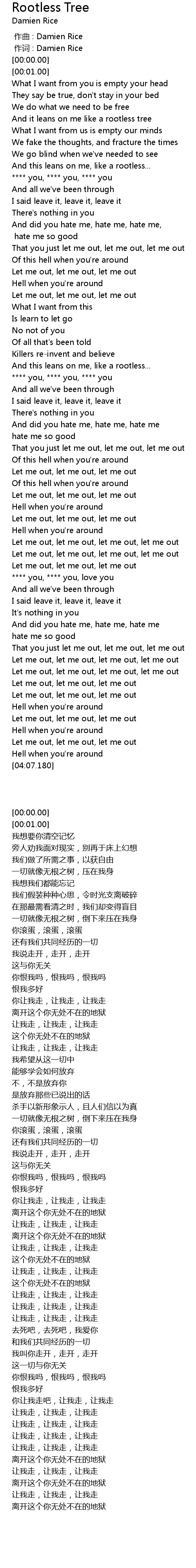 | [00:00.00] | zuò qǔ : Damien Rice |
