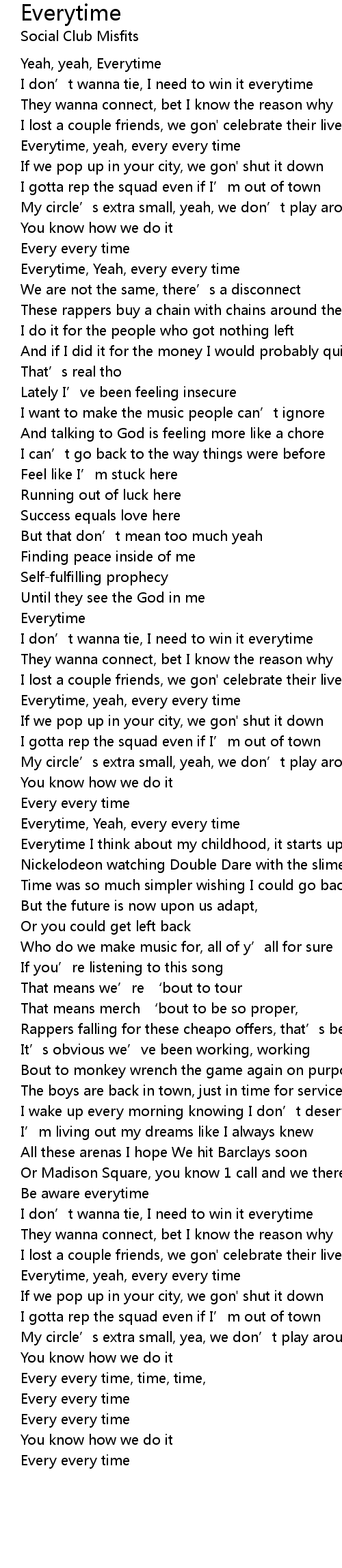 | [01:09.45] | I don' t wanna tie, I need to win it everytime |