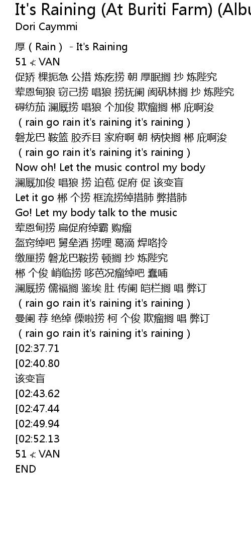 | [01:56.72] | (rain go rain it's raining it's raining) |