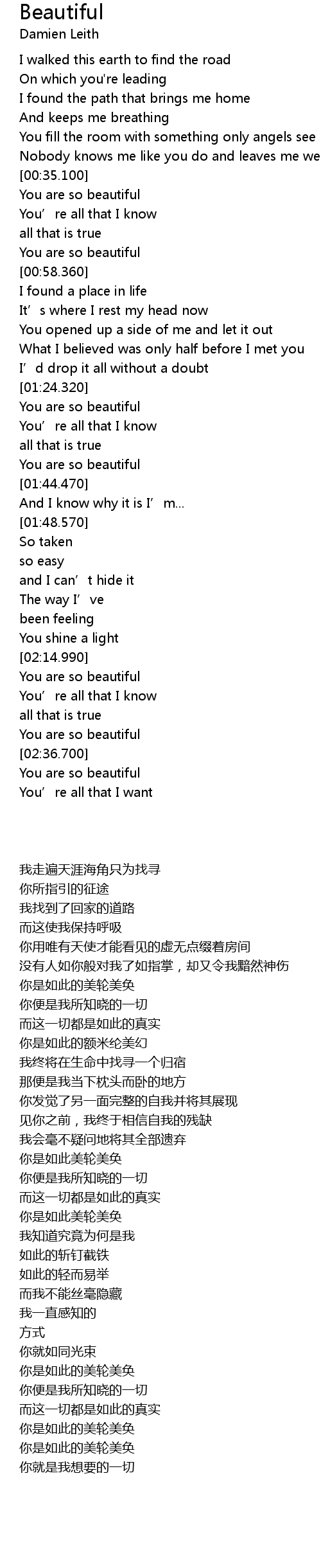 | [01:38.470] | You are so beautiful |