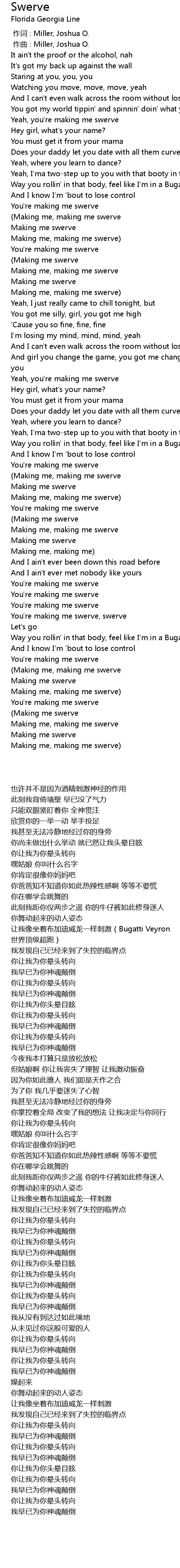 | [02:40.079] | You' re making me swerve, swerve |