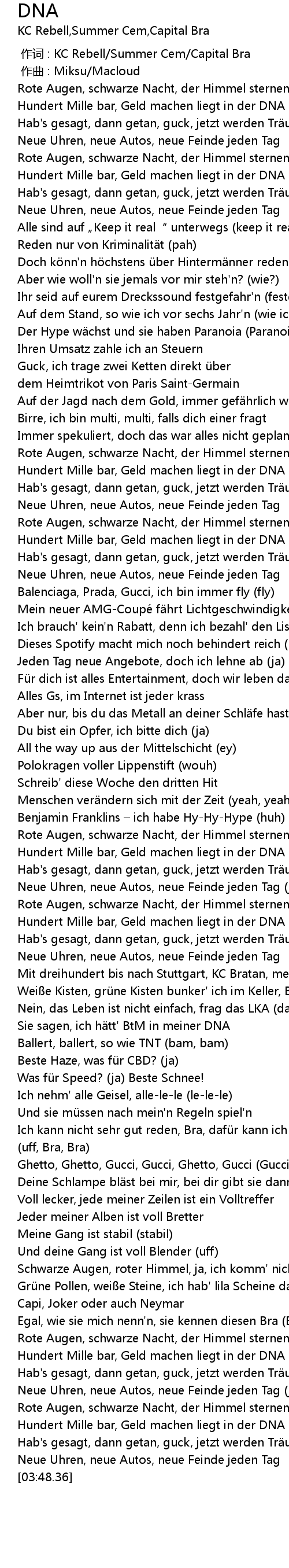 | [02:43.54] | Sie sagen, ich hätt' BtM in meiner DNA |
