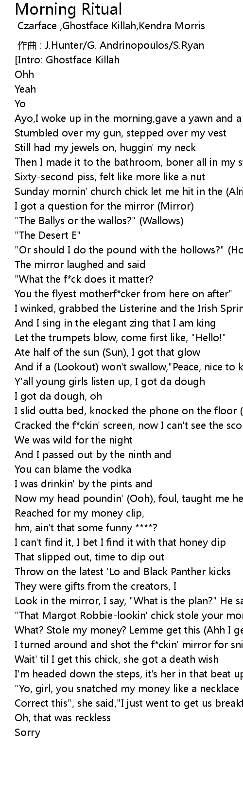 | [01:17.11] | Cracked the f*ckin' screen, now I can't see the score |
