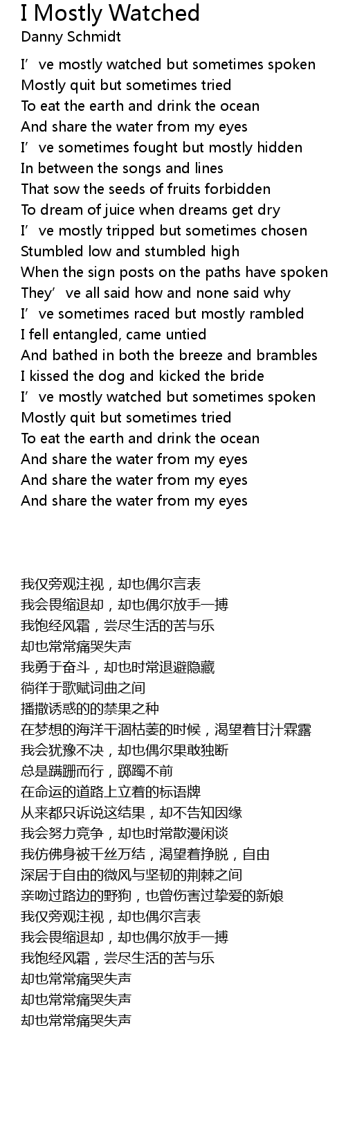 | [00:15.320] | 我仅旁观注视,却也偶尔言表 |