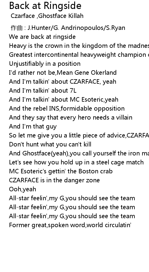 | 歌曲 | Back at Ringside |