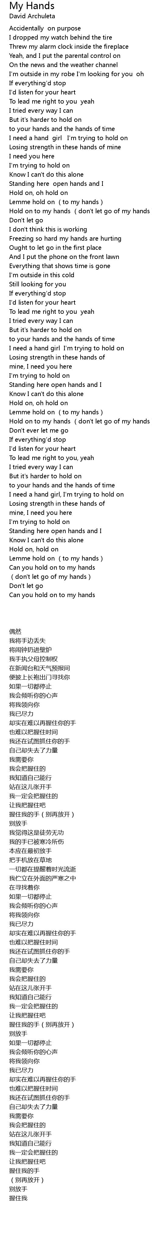 | [01:29.480] | Hold on to my hands (don't let go of my hands) |