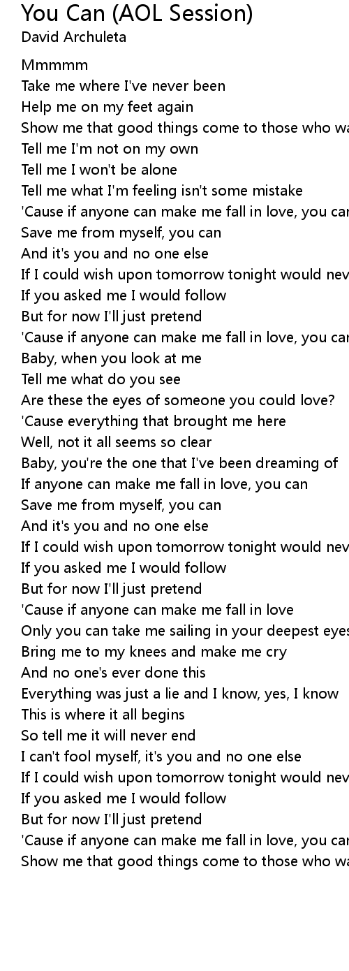 | [01:49.287] | If anyone can make me fall in love, you can |