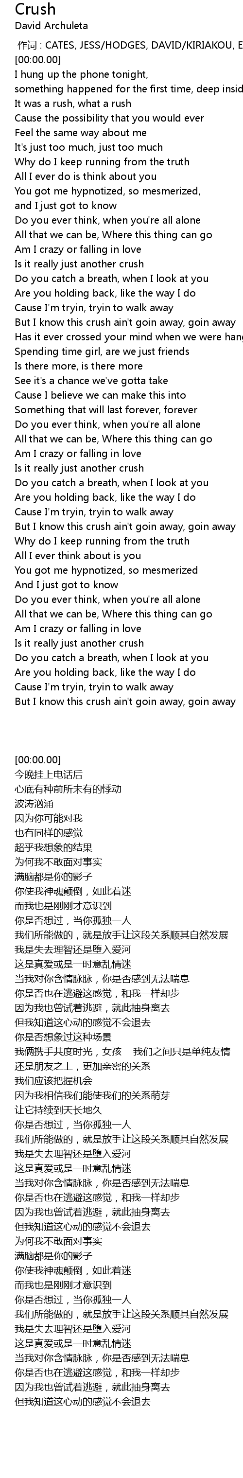 | [02:57.490] | But I know this crush ain't goin away, goin away |