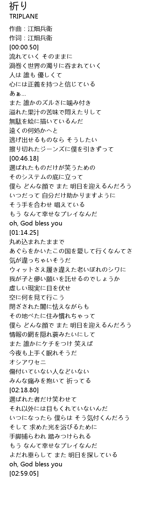 | [01:02.56] | そう手を合わせ 唱えている |
