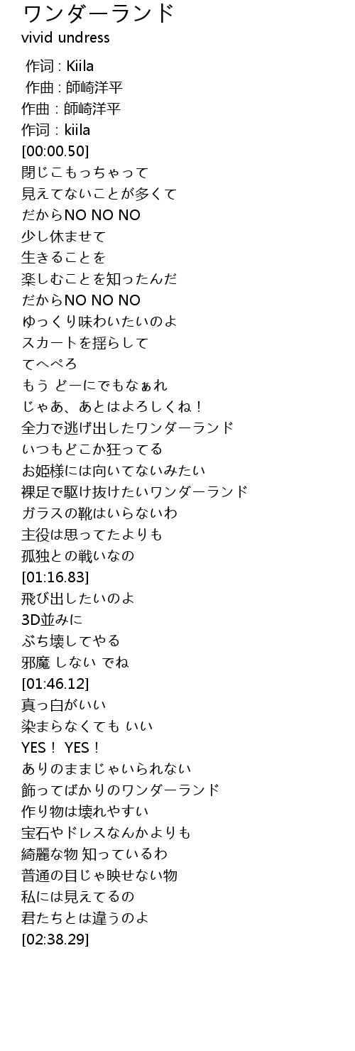 | [02:05.79] | 飾ってばかりのワンダーランド |