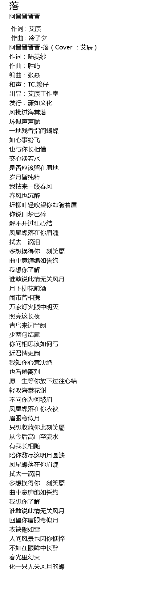 | [00:00.57] | 阿晋晋晋晋-落(Cover :艾辰) |