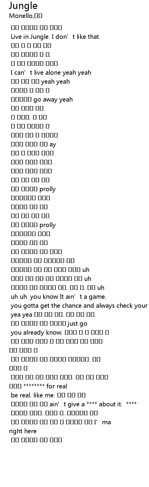 | [00:49.791] | Live in Jungle. I don' t like that. |