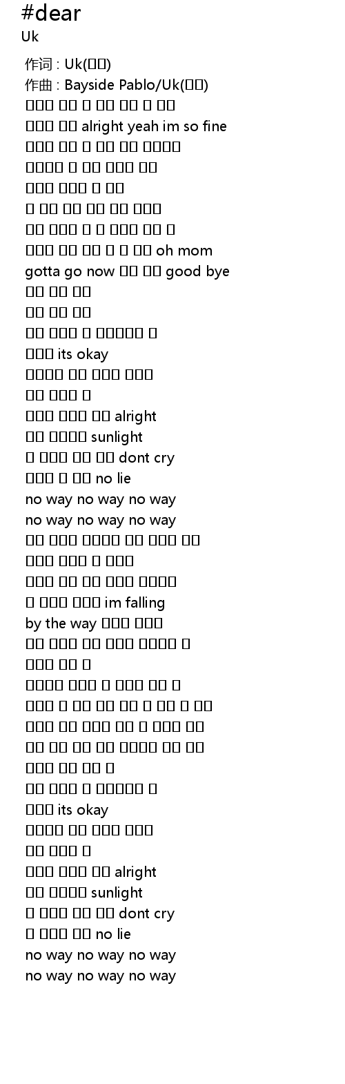 | [00:01.000] | 作曲 : Bayside Pablo/Uk(정욱) |