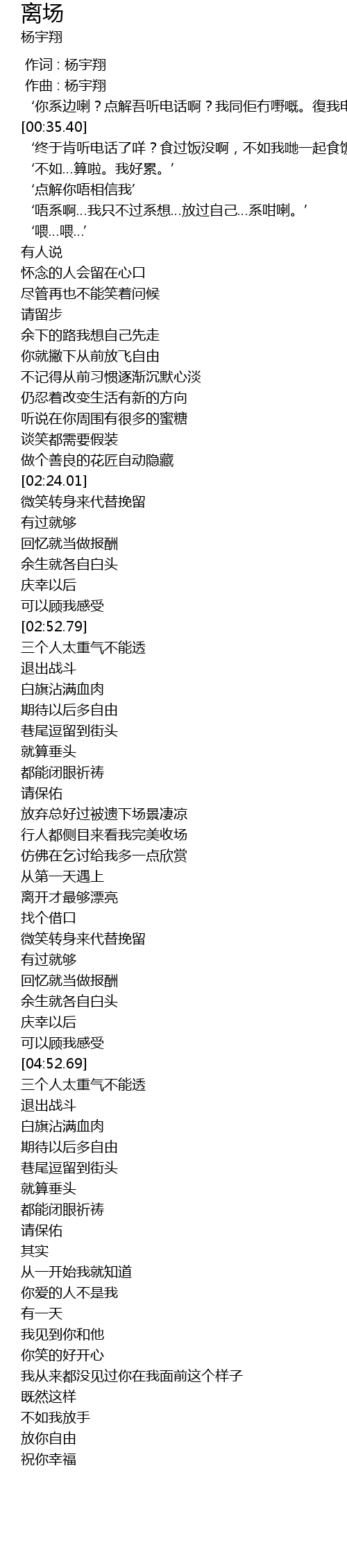 | [00:00.000] | 作词 : 杨宇翔 |