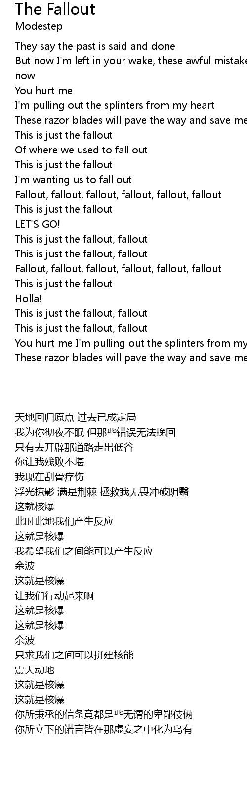 Fallout, fallout, fallout, fallout, fallout, fallout |