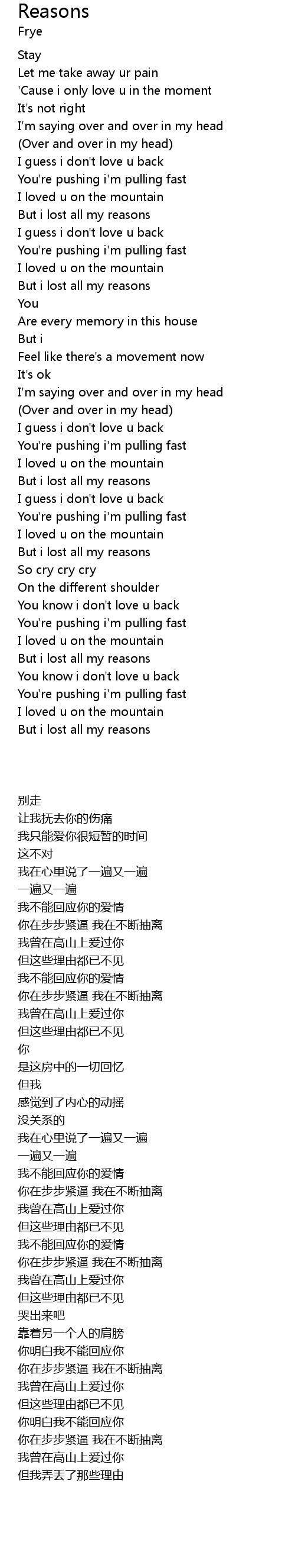 But i lost all my reasons |