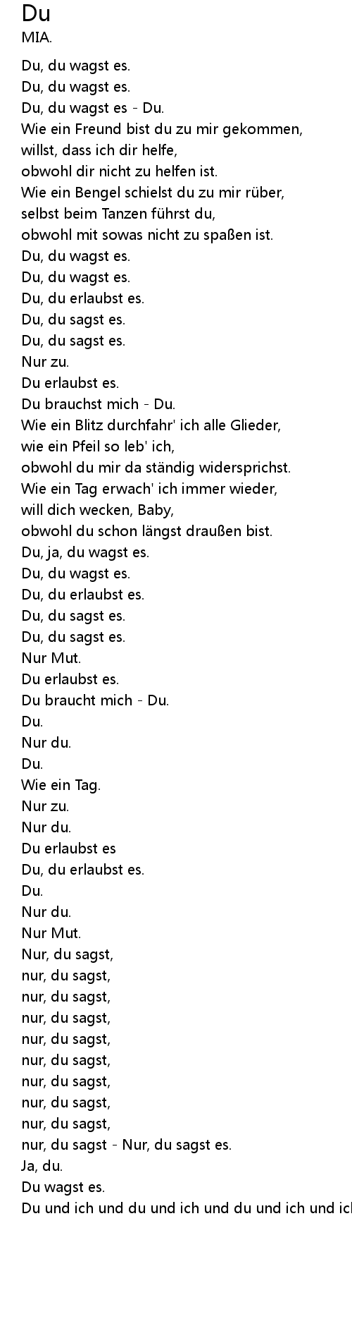 | Du und ich und du und ich und du und ich und ich und du und ich und ich und du! |