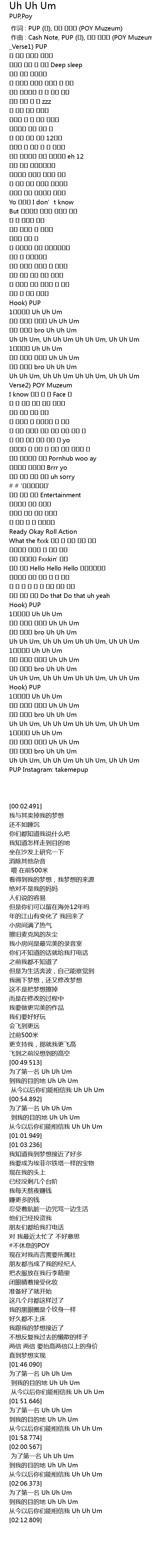 | [01:01.949] | Uh Uh Um, Uh Uh Um Uh Uh Um, Uh Uh Um |