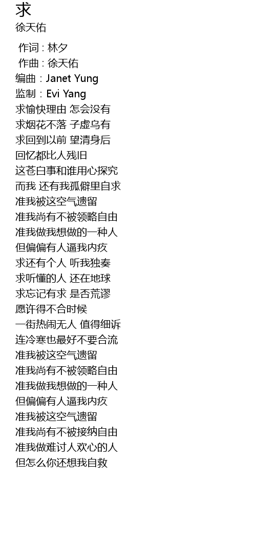 | [00:05.49] | 编曲:Janet Yung |