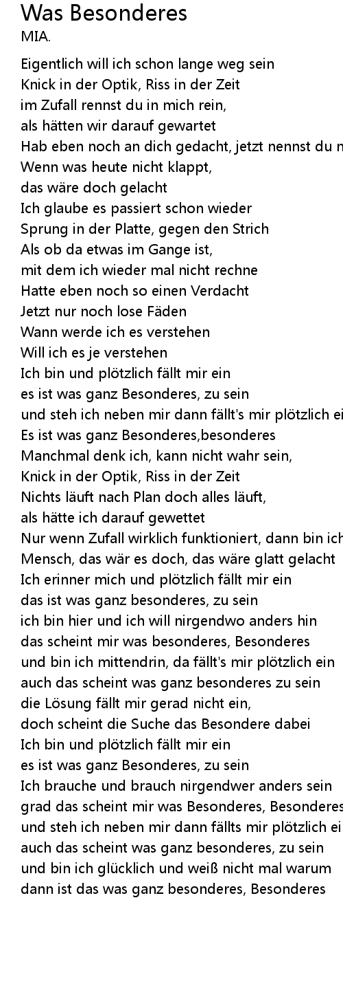 | grad das scheint mir was Besonderes, Besonderes | |