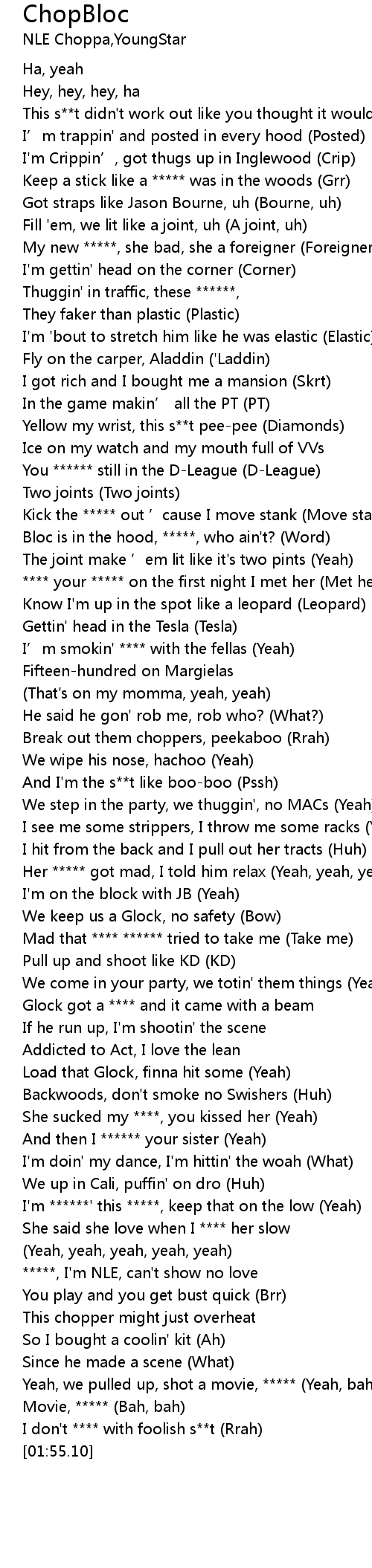 | [00:49.18] | Bloc is in the hood, *****, who ain't? (Word) |