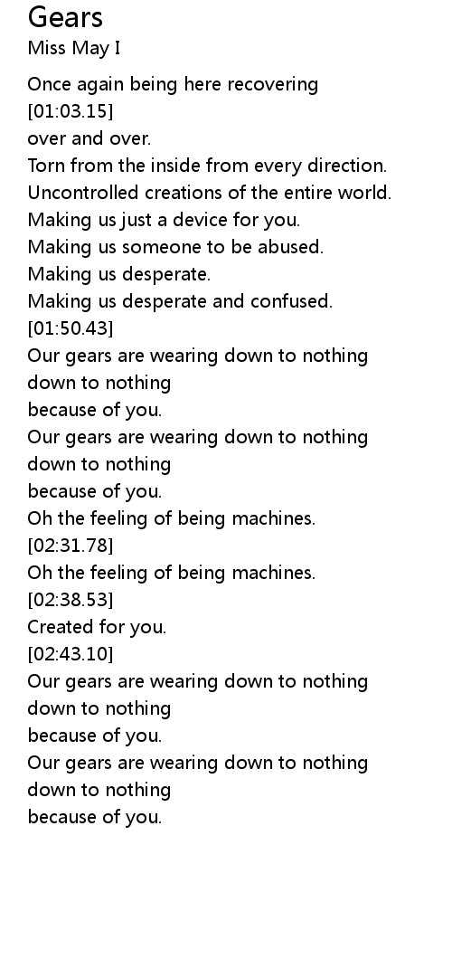 Our gears are wearing down to nothing |