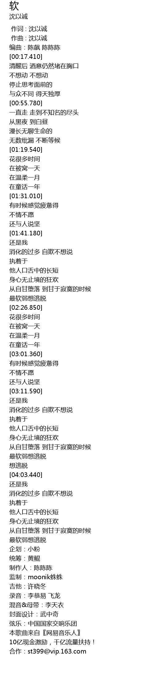| [00:00.000] | 作词 : 沈以诚 |