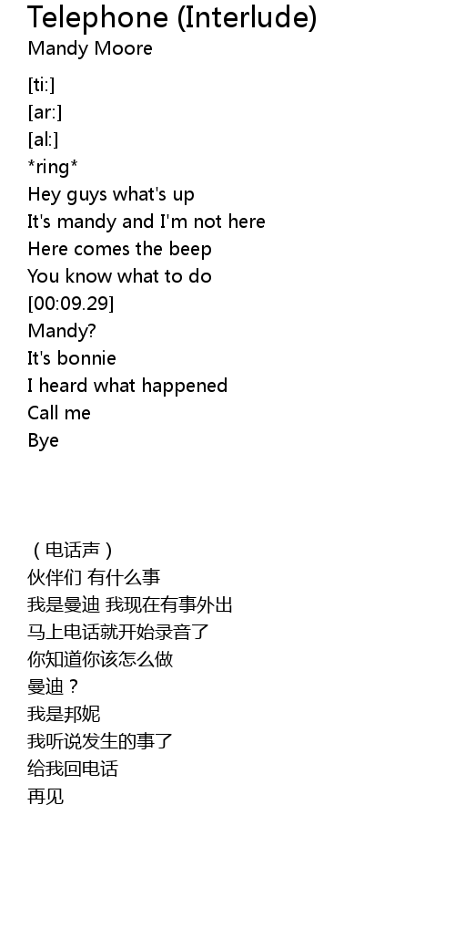 | [00:05.47] | 我是曼迪 我现在有事外出 |