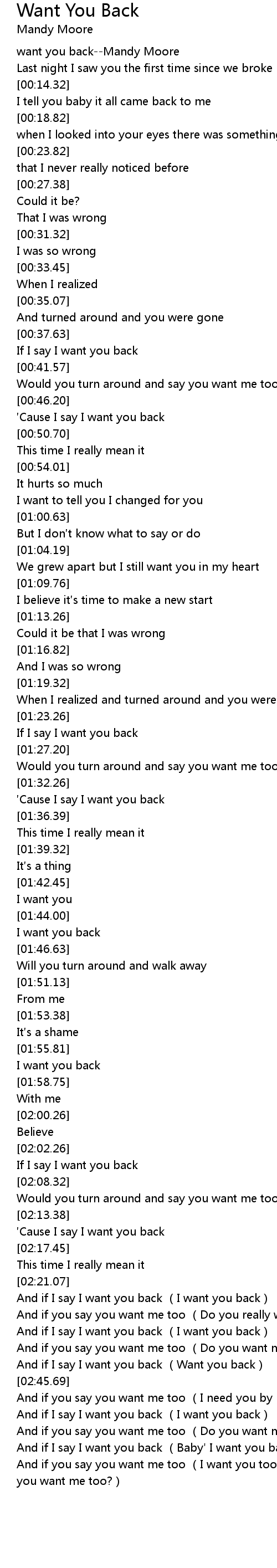| [03:00.82] | And if I say I want you back Baby' I want you baby |