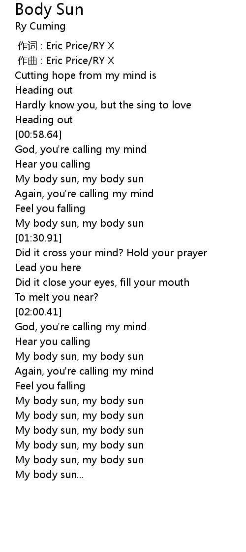 | [00:01.000] | 作曲 : Eric Price/RY X |